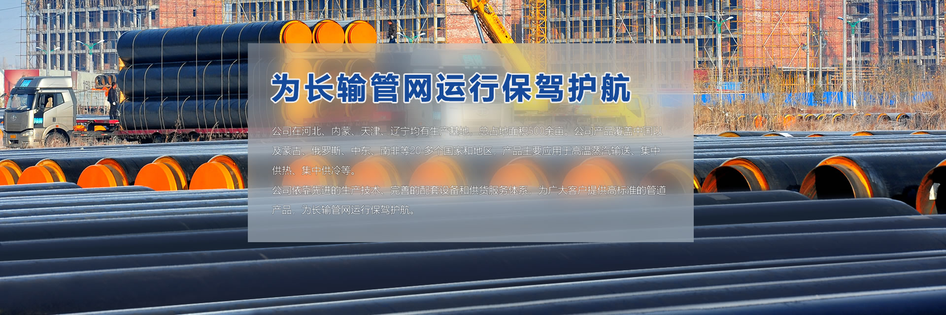 公司在河北、內蒙、天津、遼寧均有生產基地,總占地面積500余畝。公司產品覆蓋中國以及蒙古、俄羅斯、中東、南非等20 多個國家和地區(qū),產品主要應用于高溫蒸汽輸送、集中供熱、集中供冷等。 公司依靠先進的生產技術、完善的配套設備和供貨服務體系,為廣大客戶提供高標準的管道產品,為長輸管網運行保駕護航。